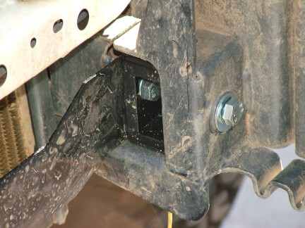 Here you can see the passenger side crush can. During the initial install, I had to cut the factory bumper mounting plate off the crush can. |