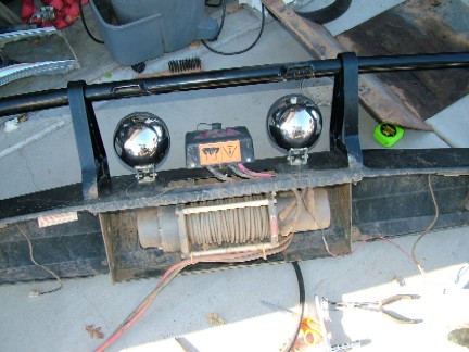 Once the brackets are done, it was time to put the bumper back on and hook everything back up. In our case, after the bumper was back on, we then found out that the scrape plate mounts were not right and had to pull it all back apart and reverse the new crossmember! |