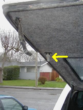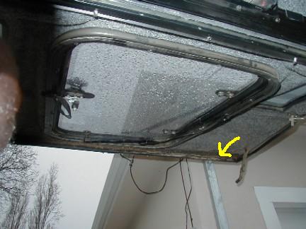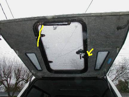There are two "straps" that are inside the walk in door. The first, shown with the arrow can be used to further lock the door handle. There is a key on the outside, but I guess if you were to sleep inside the shell you could lock it from the inside with this small strap. I have never used it, but its there! The second strap, which is shown with the yellow line and visible in other pictures, is there for.... gee... I dont really know what its there for! |