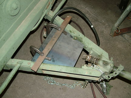 The tank was to be mounted on the tongue of the trailer. The first step was to fit a plate between the trailer frame and weld it into place. |