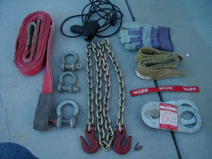 the winch kit, I have a tow strap, tree saver strap, chain, snatch block,