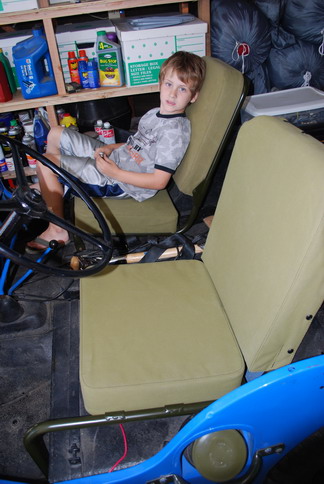 The new seats are great! I will have to repaint the frames in the future due to some paint issues, but it is very simple to remove and replace the covers after the initial installation. The new seat cushions (foam) is harder than the old spring setups, but there is also some more room between the seat and the steering wheel which is always good in these old Willys. The seats were done by Clancys Shop in Cotati. I was extremely happy with the work and the price, I will be using him again in the future with this project. His contact phone number is 707-793-9440, if you are in the area and need work done I would recommend him. |