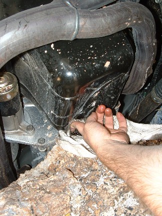 So Warren is off to a great start with his 03 Wrangler Rubicon... the next few pictures are of his damage. Here you can see the oil pan still on the rock. |