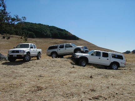 This is the first time that we have had all three of the Tacoma trucks in one place at one time... On the left is Warrens truck, an 02. The middle is Kris and Michelles 02. On the right is my 01. |