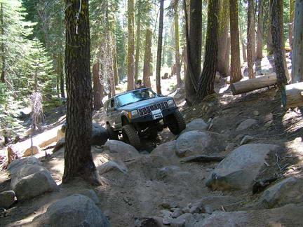 Much like the Rubicon Trail, Barret Lakes has obstacles with stretches of easy road between. Here Jim is working on one of the obstacles. |