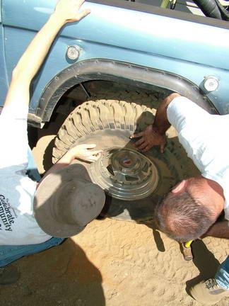 Jim slipped sideways and found this large rock under the rear of his Bronco. After a bit of maneuvering he was on his way. |