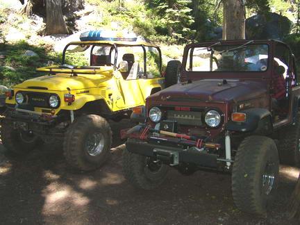Final carnage report: Myself (taco): one CV, one dent Mark (sami): unknown drive train noise Alan (cherokee): t-case, minor scratches, rear diff cover Donnie (cherokee): dent in drivers door, dent in drivers side passenger door, both rear quarter panels, bent tie rod, front end noise. Jim (bronco): left front fender, right front fender. |