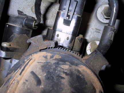To remove the air intake from the throttle body, you need to release the clamp. In order to do that you must get a small screwdriver under the teeth. |