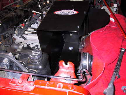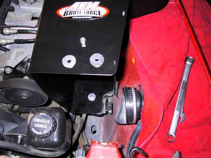 After fit and clearance is OK, remove the air filter, and tighten the two bolts that hold the shield to the factory bracket. |
