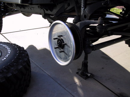 OK now for the part were I explain how they work and what they will do for your tires. How they work Here is a great link to a video on the centramatic webpage, it shows how they work. http://www.centramatic.com/Demo/video2.mpg Inside the ring is a mix of oil and lead alloy “BB”s. (for lack of a better term). As you drive, these BBs distribute themselves around the ring. (there is about nine ounces of weight) As you drive the tire starts to deflect (bounce). This deflection causes the media to move in the ring. The media will continue to move until the tire stops deflecting. When this happens the tire is in balance! This happens very quickly and unnoticed. It takes some speed to get the media spread out, about 25mph. However at this speed and below, balance is not an issue. You may hear the media “slushing” at low speeds. As you get above 25 mph you will have enough energy to start the media moving around to balance the tire. As you go faster the tire will already be balanced and will continually fine tune the balance as you drive. As you slow down you will notice you can get down to about 10 or 15 mph before the “slushing” sound comes back as the media falls to the bottom. Although I can hear this with my doors off, you may not even notice it. My wife doesn’t, and I tried to point out the noise to a friend and he could not pick it out. Great. So what does this do for my Tire…. Well for one, it can keep the tire cooler at highway speeds. As an unbalanced tire (even an unperceived imbalance) rotates at speed, the sidewall will deflect causing heat. Also the contact patch at the point of deflection gets more wear and more heat due to the extra pressure on the tread. This point of contact and deflection does change with speed. If you have ever seen a tire on another car bouncing way up and down you can imagine the forces and temps involved. This happens when the weight and the deflection (bounce) of the tire coincide on the “up” side. As you may have noticed at one time or another if you speed up it seems to smooth out, well it really doesn’t. All you are doing is putting the energy into the tire (heat) and rotating it around before the deflection and the weight push the tire up together. So the weight may be almost at the top of the tire before the deflection starts to push the tire up. This puts wear and heat in other spots than the off balance point. So now we know how an off balance tire can heat up odd areas of the tire tread and sidewalls. Heat kills tires. It hardens the rubber on the tread and can lead to belt separation, among other things. Ford tried to blame tire failure on the Explorers on low tire pressure causing excess heat, leading to tire failure. Soooooo, if we run a cooler tire that is in balance minimizing tread wear, will it last longer. YES IT WILL!!!!!! About 25% to 50% more life out of a tire. There is a Steer Tire (term used on “big rigs” front tires) with over 200,000 miles on it with useable tread still left on it! (100K is typical on this tire). I know of a set of MTRs with over 30k on them on a H1. What can I do to help all this? It may sound silly. Have the tires checked for roundness, and have them well balanced before you install the centramatic. “Why balance? I thought that was the centramatics job?” Well it is. However, if your tire is well balanced to begin with the more the centramatic can compensate for. If your tire is at the limit of the unit (around nine ounces) how can it compensate for mud on the part of the tire with the extra weight. Having the tires roundness checked and taken care of is also important. So we know what they can do, what cant they do? They can not fix an out of round tire, not completely anyway. A tire with a hard or high spot will cause deflection, this will cause the media to move to counteract it, and it will to a point. However the harder you hit a high point or hard spot the sharper the result. You can not “balance” out a bump. An out of balance tire is a smoother movement, like a wave. (The resulting feel is different due to shocks, the road, and deflection) Think of an out of round like gluing a rock on the tread. No matter how much weight you put on the other side it will bump the tire upwards. Now imagine two or three hard spots. An out of round can be in perfect balance, but have one or more hard or highspots. If you have a minor hard spot that is under say eight ounces of force, the centramatic can help smooth out the tire, even may help wear down the hard spot. They will also let you know if a wheel bearing is going bad or is loose. The movment of a loose bearing will cause the media to unevenly disperse and your tire will vibrate. Of you have a set on and a tire starts vibrating, check the wheel bearings. One more big ‘NO NO’. Do not spin the tire up to speed on a jackstand or the like. The tire will not have the deflection of the sidewall to disperse the media. It will cause the media to just lump up on one spot and cause the whole axle to start bouncing on the stand. The cure to this is to remove the centramatic on that axle before you spin up the tire. Are there other things available? Yes there is. Some are commercial other are home brew. Stay away from the home brew! One company uses a similar idea, with a plate and ring filled with mercury. It works on the same idea but costs much more money. Also, if you are in an accident and bust one, you have a liquid mercury spill. The centramatics have lead alloy shot, but is not going to really go anywhere. Mercury is not called “quicksilver” for nothing, and is extremely toxic. Lead can be toxic, but the government gives licenses to hunters who shoot lead bbs in fields and forests. Then there are the powders. Power is inserted into the tire. It works on the same idea. The power will be moved around by the deflection of the tire. There are many “things” that people have put in their tires to replicate this idea. Among theones 