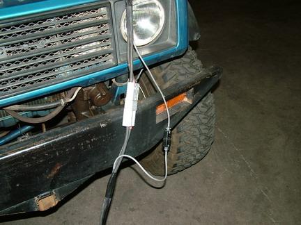 The Mobi-Arc came with a kit to modify the factory alternator so it could be used for welding. We installed this kit for our testing and used the stock alternator. We then switched it out for a Northwest Power Products 160 amp model so we could see the difference between the two. To install the Mobi-Arc, we first used the provided kit to modify the factory alternator to allow it to be used for welding. This was a fairly simple task, and the instructions were clear and easy to follow. After the factory alternator had been modified, it was re-installed into the vehicle. A spot was selected for the control box. We made a simple bracket that would use existing bolts to mount the control unit to the vehicle. The wiring of the Mobi-Arc was simple and the diagrams were easy to follow. The included throttle control was installed and we were ready to go! The Mobi-Arc unit is a completely solid state welder that is fully automatic with no switches, knobs or controls. When you plug in your welding leads, all you need to do is strike an arc and start welding. Until an arc is struck, the alternator continues to charge the battery as normal. When the arc is struck, the Mobi-Arc instantly breaks the connection between the alternator and the battery. This isolates and protects the vehicle's battery and electrical system. The alternator is then ramped-up to 38 volts open circuit which is optimum open circuit voltage for the welding process. If welding ceases for more than 50 seconds, the Mobi-Arc will automatically ramp the voltage back down to an automotive friendly 14.5 volts and restore the connection to the battery. Mobi-Arc also has a variety of optional items that can be added to the Mobi-Arc system. Some of these include a Mobi-Power 110v module and a TIG welding kit. After we installed the Mobi-Arc unit, we welded with it for a while going through about 6 rods. It produced nice welds and was easy to use. On test night we planned to weld with all the units side by side, but there was an unknown problem and we were not able to use the Mobi-Arc unit that night. It took quite a bit to track down the problem, and as is the case with many electrical related problems it turned out to be something quite simple, completely unrelated to the Mobi-Arc unit. When we spliced the wire on the Mobi-Arc harness to the keyed on power wire, the red ignition wire from the original alternator harness, we used a simple plastic quick splice.