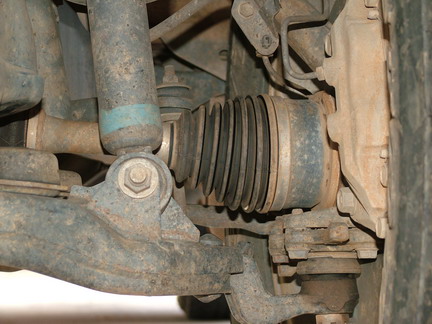 Remove the lower bolt and then move to the top of the strut. You can see the lower strut bolt here and also the CV boot. The CV angles are very good and the boot fins have lots of room. |