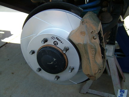 Here is a picture with the new brakes all installed. We will be doing some follow up on the performance of these new brake rotors and pads in the future! |