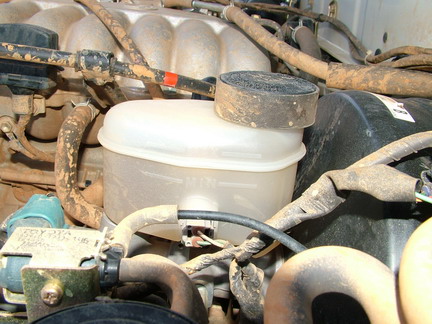 Now lets talk about pushing the pistons back into the caliper some. With some vehicles, you can do this by hand, and other you can not. First thing I did was to see where the fluid level in the master cylinder was. |
