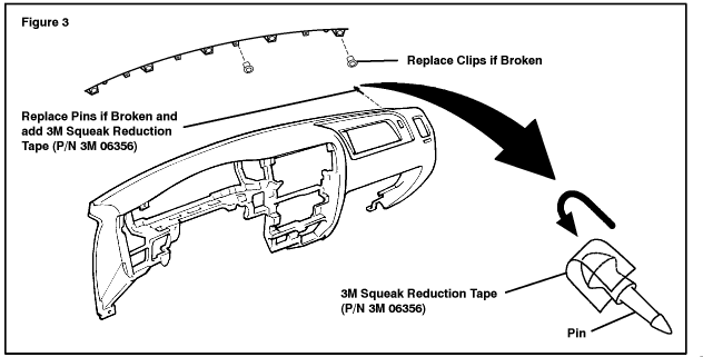 brackets. Noise From Radio Bezel Wrap the radio bezel clips with 3M Squeak Reduction Tape (P/N 3M 06356). Noise From "A" Pillar Wrap the "A" pillar clips with 3M Squeak Reduction Tape (P/N 3M 06356). |