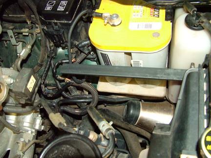 The throttle adjusting lever was attached to one of the air intake clamps. |