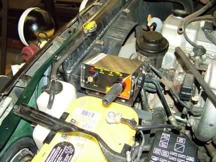 The backup voltage regulator was mounted on the underside of the mounting bracket. In case of a malfunction of the Mobi-Arc unit, you can bypass it and use the backup voltage regulator so that you still have a working alternator and charging system. |