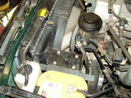 The next step was to make a mounting bracket for the control unit. A piece of flat stock was bent and drilled to use existing bolts. |