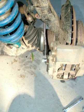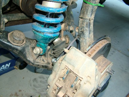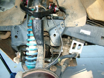 The first few pictures are of the Pro-Comp lines and how they were routed. Because of the large block banjo fitting and the small tab on the caliper the line has to exit going straight up. |